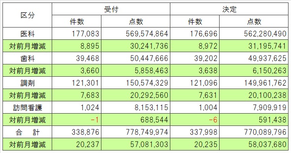 受付件数・点数及び決定件数・点数並びに対前月増減