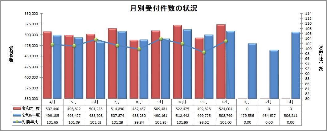 2. 月別受付件数の状況(医科・歯科・調剤・訪問看護の合計)